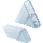 三角構造が特徴の、卓上で倒れにくい安定感を備えたペンケースです。少し厚みのあるPUレザーを使用しており、形をキープするのが魅力。金属製のリングと滑らかなファスナーで、開閉はスムーズに行えます。