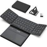 実用性を重視したタッチパッド付きキーボードです。厚さ約18mm、重さ約217gと扱いやすいサイズで、コンパクトに折りたたみも可能。上着のポケットやカバンに入れて気軽に持ち運べます。