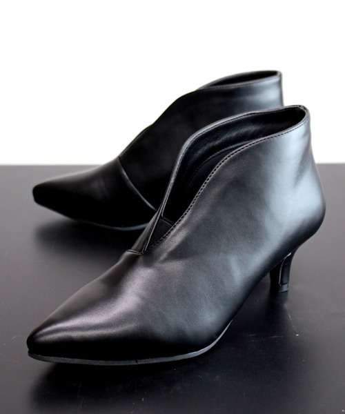 メヌエ(Menue) サイド Vカット ポインテッドトゥ ブーティ
