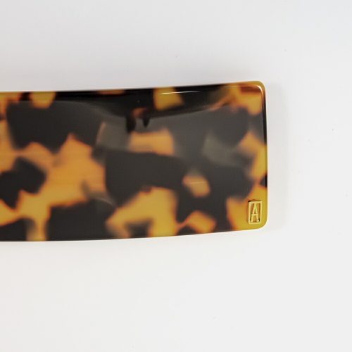 美しいツヤが特徴のアセテート素材を採用。べっ甲風の質感が上品な印象を演出し、大人の女性にぴったりです。ブランドイニシャルの「A」の装飾もさりげないポイント。ベーシックなデザインで、デイリーからオフィス、お呼ばれシーンまで幅広く活躍するおすすめのアイテムです。