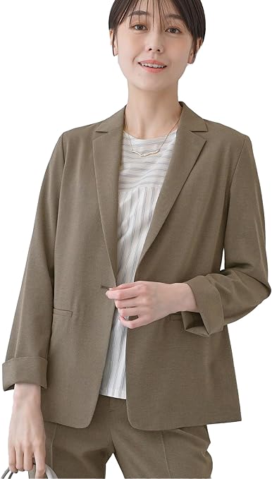 ヒップにかかる程度のやや短めの着丈で、スタイルアップ効果を期待できるのがうれしいポイント。ビジネスシーンはもちろん、子供の学校行事などでも重宝します。自宅で手軽に洗濯ができるので、手入れがラクなジャケットを求めている方におすすめです。