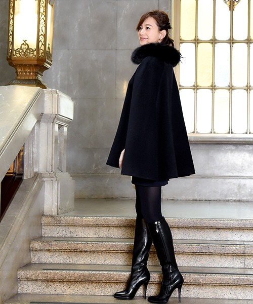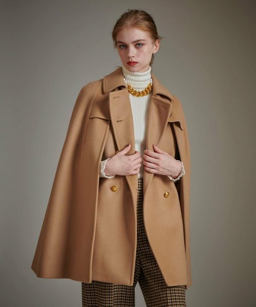 カシミヤやアルパカといった希少素材を採用したケープコートはあたたかく、高級感のある表情が魅力。高価なものが多いため、1着を長く愛用したい方におすすめです。