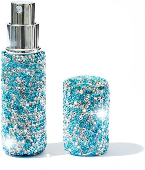 キラキラしたラインストーンで装飾された香水アトマイザー。まるでジュエリーのような見た目で、高級感のあるアトマイザーを探している方にぴったりです。
