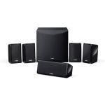 5.1chホームシアター環境を整えるスピーカーセット。センタースピーカー1台とサラウンドスピーカー2台のセットで、フロントスピーカーやサブウーファーと組み合わせて本格的なサラウンド環境を構築できます。