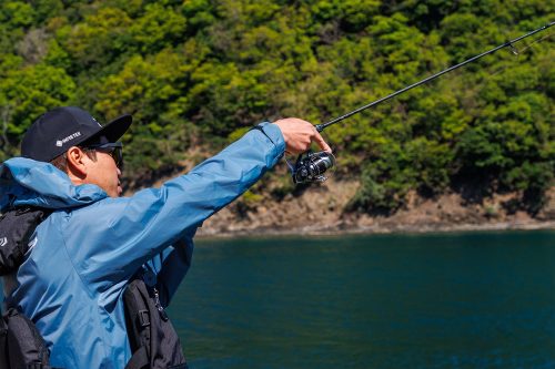 エギングはキャストしたらエギをある程度沈め、ロッドを上方向に煽りながらエギをシャクるのが基本。しゃくり続けると水面に上がってきてしまうので、一定のリズムでリフト&フォールを繰り返すのがポイントです。よって、ロッドにはキャスタビリティと操作性、さらにはアクションのしやすさを兼ね備えたモデルが適しています。