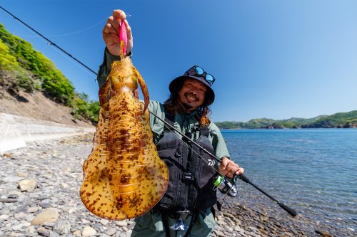 なお、イカは魚のように口でバイトしてくるのではなく、エサとなる小魚や甲殻類を抱きにくるのが捕食のスタイル。アングラーとしてはエギをしゃくり続けて、気づかせる、反応させる、抱きつかせるのがポイントになります。