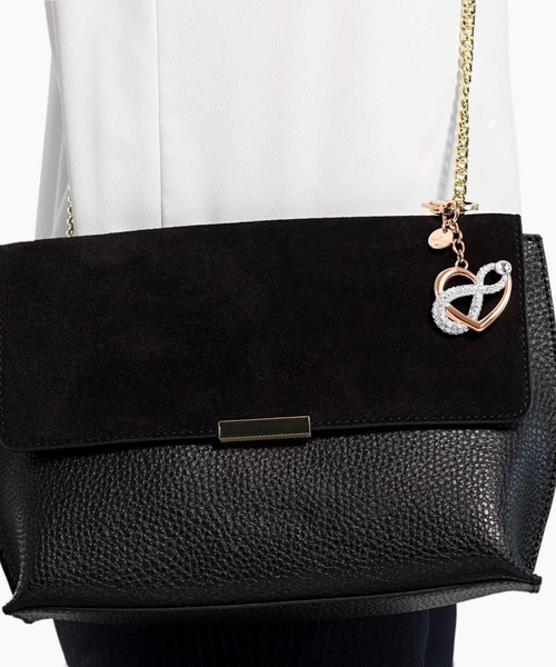 インフィニティとハートモチーフを組み合わせたエレガントなバッグチャームです。洗練されたデザインが、バッグや鍵を華やかに飾ります。