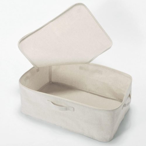 ポリエステルと麻を組み合わせた風合いが魅力的な布製タイプの衣装ケース。やわらかな素材感ながら、自立するしっかりとしたつくりが特徴です。使わないときはコンパクトに折りたためる仕様で、収納スペースを取らないのがメリット。ナチュラルな色合いで、インテリアのテイストを問わず馴染みやすいデザインです。