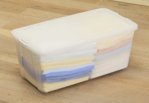 容量が大きく、冬服や厚手の衣類をまとめて収納できるのが蓋付きタイプの特徴です。しっかりと蓋を閉めることでホコリが入りにくく、防虫剤や除湿剤を一緒に入れておけば、虫食いやカビ対策もできます。