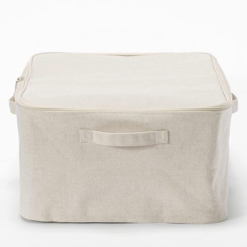 天面と前面の二面からモノの出し入れができ、前面はジッパー式で開閉はスムーズです。使わないときはたためるコンパクト設計で、持ち手があるため持ち運びは簡単。クローゼットの整理や衣替えの収納で悩む方におすすめです。