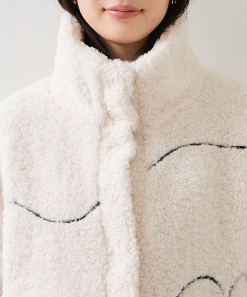 ハートのコード刺繍が施されたボアブルゾンです。フロントとアームに施された繊細な刺繍がアクセントとなり、さりげないかわいらしさを演出します。裾にはドローストリングが備わっており、ラウンドシルエットの調整が可能。ハイネックデザインが顔周りをすっきりと見せます。