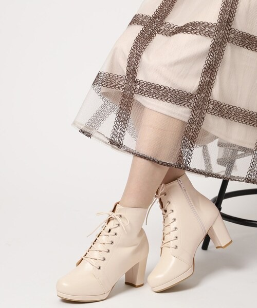 エスペランサ(ESPERANZA) アーモンドトゥレースアップ厚底ショートブーツ
