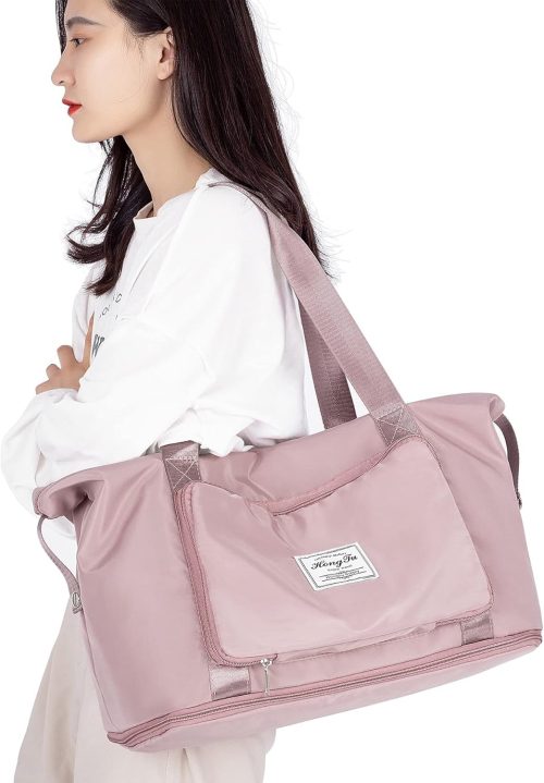 素材は耐久性と撥水効果のある高密度ナイロンオックスフォード生地。ピンク・ブラック・ブルーなどを展開しており、好みやシーンに合わせて色を選べます。スポーツジム用や2~3泊の旅行用におすすめです。