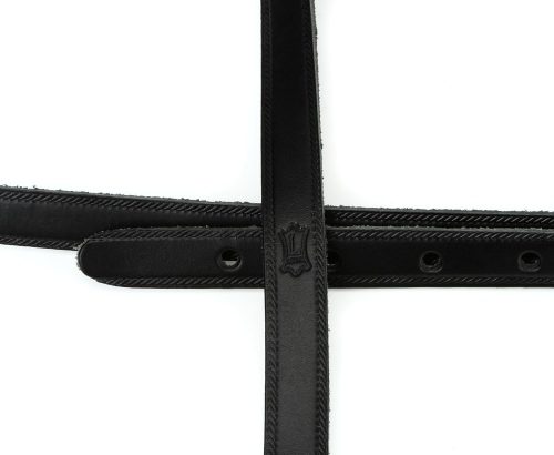 エンド部分の素材は厚みのあるレザー。耐久性に優れ、ストラップピンをしっかりと保持できます。ストラップの長さは、スライド式アジャスターによって約800〜1370mmの間で調節可能です。