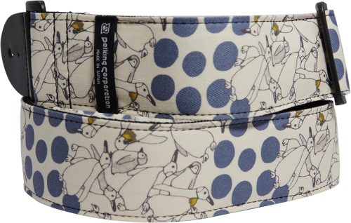 素材にこだわったギターストラップ。日本製の生地で、ペンギンと水玉のデザインがかわいらしい印象を与えます。エンド部分には牛本革を使用しており、合皮と比べて突然切れるリスクが少ないのが魅力です。