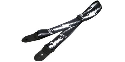 世界的にも有名なロックバンド「AC/DC」のロゴを配したギターストラップ。バンドとイナズマ柄のロゴは熱転写によってデザインされています。