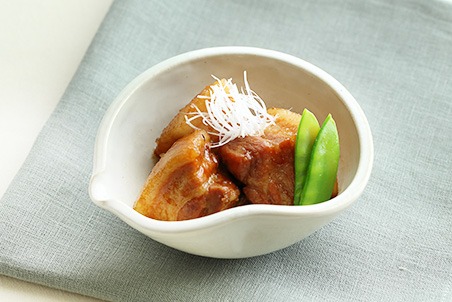 甘酒の自然な甘さを活かした、角煮のレシピです。調味料はストレートタイプの米麹甘酒125mlのほか、醤油大さじ2、水を適量用意しましょう。具材には、豚バラのかたまり肉400g、長ネギの青い部分、白い部分を各10cm、絹さや4枚、生姜1かけを使います。豚肉は食べやすい大きさ、生姜は薄切り、長ネギは白髪ネギを作るようにカットしておきましょう。また、絹さやは筋を取りさっと茹でておくのがポイントです。
