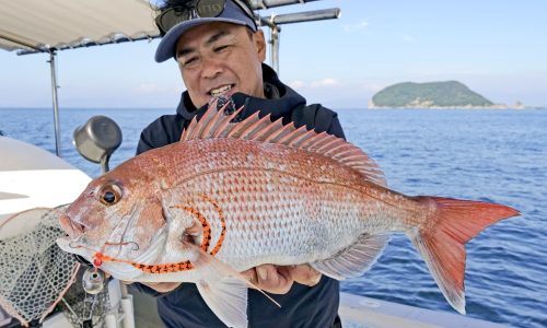 釣りとしては船からマダイを狙うスタイル。船の流し方にもよりますが、狙う水深は100m前後で、タイラバが着底したら巻き始めるシンプルな釣りです。