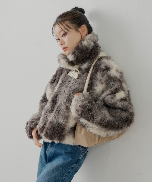 カラーは、柔らかなベージュ、リュクスなブラウン、キャッチーなミックスの3色を用意。ワンピースからワイドパンツまでさまざまなボトムスとバランスがとりやすく、着こなしの幅が広がります。コーディネートの主役として、秋冬のおしゃれを楽しみたい方におすすめの一着です。