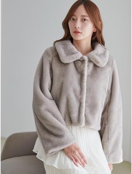 ふわふわの毛足が印象的な、ボリューム感のあるファーショートコートです。大きめの襟が顔周りを包み込み、小顔見せ効果も期待できます。短めの丈感なのでスタイルアップが叶い、ミニスカートやワンピースとの相性もよくフェミニンな着こなしが楽しめます。