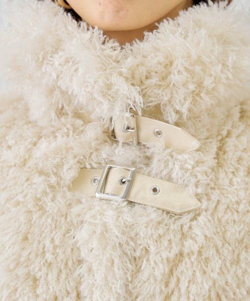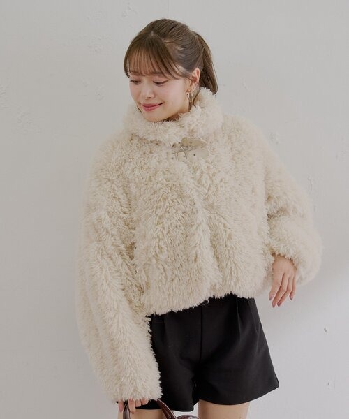 トグルボタンがアクセントになった、ふんわりやわらかなファージャケットです。ボリューム感のある仕上がりで羽織るだけでコーデの主役に。ガーリーにもカジュアルにも着まわせるデザインが魅力です。