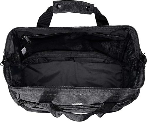 サイズは幅41×高さ26.5×マチ15cm。1泊旅行に適した大きさです。収納力に優れているのも魅力。内側にはオープンポケット5つとファスナーポケット1つ、外側にはスナップポケット2つを備えています。