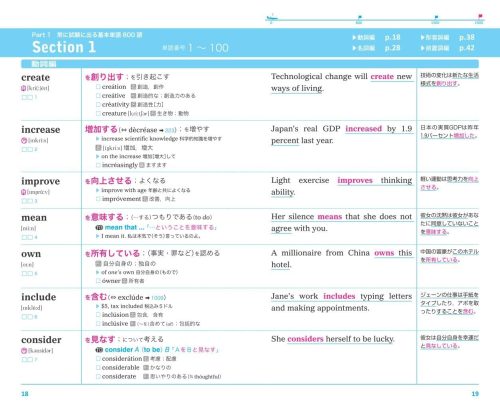英語での語義説明とTOEFL本番テストに基づく例文が掲載され、実践的な英語運用力を向上させる点が特徴。全単語に日本語訳付きの例文があり、単語の意味だけでなくニュアンスや使い方まで深く理解可能です。