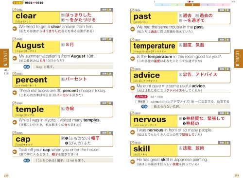 重要語は500語ずつ5つのレベルに分類。語義だけでなく類義語や反意語、アメリカ英語のスペリングも併記されており、効率的に語彙力を向上させる工夫が施されています。