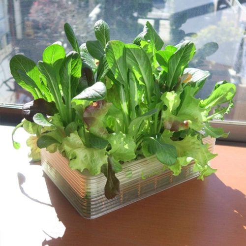 日中は太陽光、夜間はLED照明や蛍光灯で育成する仕様。種植えから40~50日で収穫でき、周囲の葉から摘み取れば再収穫も可能です。水耕栽培が初めての方におすすめのモデルです。