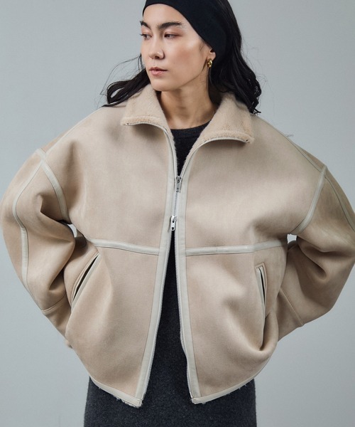 リバーシブルで着られるおすすめのレディースムートンコート。ボア面とスエード面があり、シーンに合わせて2WAYで着用できます。所々に配されたパイピングがこなれ感を演出。オーバーサイズなので、リラクシーな着こなしが叶います。