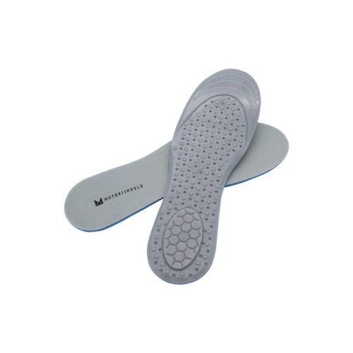ムテキジェルとスポンジの二層構造で衝撃をやわらげるインソール。足裏に配慮したクッション構造のムテキジェルを凹凸に配置しているのが魅力です。立ち仕事や長時間歩く方におすすめです。