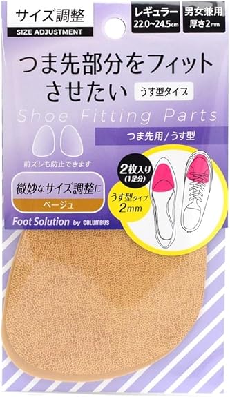 つま先・かかと用のハーフインソールタイプは、靴の前部またはかかと部分だけをカバーする短い形状のアイテム。フルサイズよりもかかとのフィット感を損ないにくく、靴の形を保ちやすいのがポイントです。