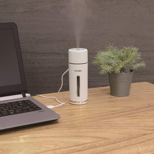 パソコンのUSBポートやモバイルバッテリーから充電可能。さらに、最大7時間連続運転ができるので、こまめに水を入れる手間を省けます。家だけでなくオフィスなどでも使いやすいのが便利です。