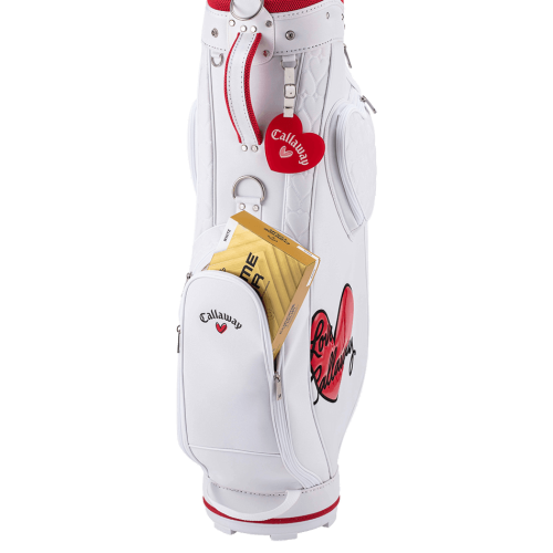 ハートモチーフがかわいいゴルフバッグ。キャロウェイロゴがハートマークになったLOVE Callawayシリーズは、オリジナルのキルティングパターンがポイントです。スリムで持ち運びやすいフォルムながらも8.5型で、46インチ対応の収納力を実現しています。