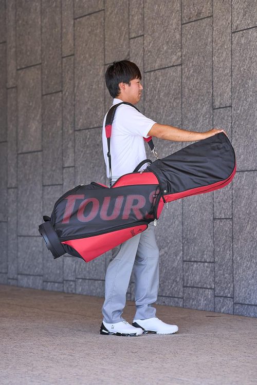 キャディバッグは、ツアースタッフバッグからスタンド型まで多彩なモデルを展開。合成皮革とポリエステル素材を組み合わせたデザインで、機能性と高級感を兼ね備えています。軽量かつ収納力に優れたモデルが揃っているので、セルフプレーをする方にもぴったりです。