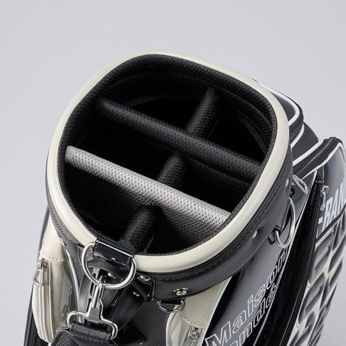 口枠のサイズは9.5型で、47インチまでのクラブに対応。6分割により効率的な収納が可能です。重さは3.6kgで適度な重量感があります。幅広いニーズに応える実用性の高い設計が魅力。目を引くデザインを好む方やプレミアム感を求める方におすすめのキャディバッグです。