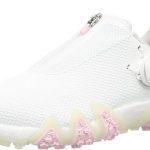 さまざまなウェアと合わせやすいシンプルなデザインを採用した、靴紐タイプのゴルフシューズ。かかと部には、ワンポイントとしてブランドロゴが描かれています。カラーはホワイト・ホワイト×ピンクの2種類です。
