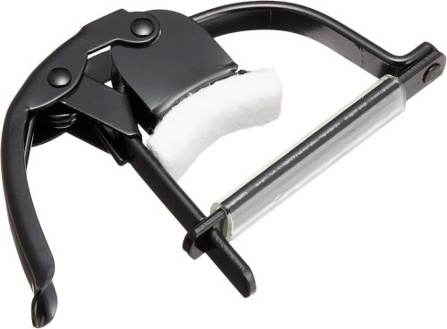 素材は軽量で丈夫なアルミニウム。バネ式のため片手でスムーズに着脱できます。チューニングの安定性を保ちつつしっかりと弦を押さえたいエレキギタリストにおすすめです。