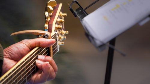作曲やアレンジの際に、開放弦を活かした独特の響きを作り出せるのも魅力。カポを付けたフレットを基準にコードを読むだけで押さえ方を変えずに演奏できるため、初心者にとっても心強いアイテムです。