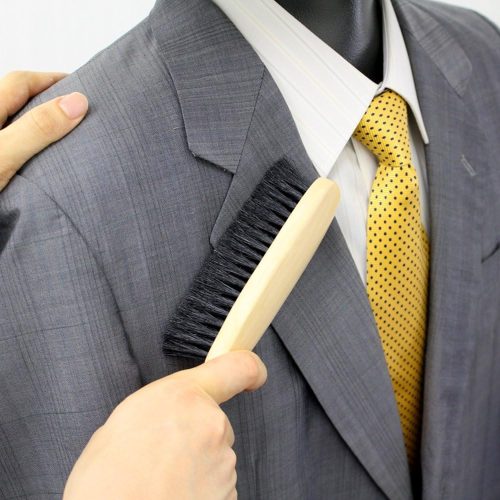 肩や胸、背中だけでなく、襟の裏などの見えにくい部分も忘れずにブラッシングしましょう。ブラシの毛先が生地にまっすぐ当たるように意識してみてください。