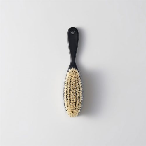 大切なカシミヤ素材の衣類をやさしくケアする洋服ブラシ。厳選した豚毛のみを、二段植毛という独特の技術で植えています。力を入れてブラッシングしても生地を傷めにくいのが魅力です。