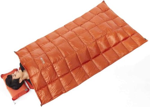 簡易寝袋とブランケットの2WAY仕様で使い分けできるアイテム。800FP EXダウンを使用し、346gの軽量設計。コンパクト収納で荷物を減らしたい登山やキャンプに活躍します。