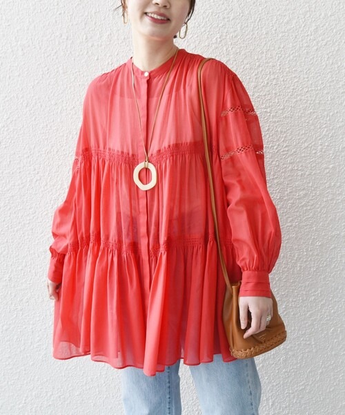 シップス(SHIPS) 強撚 コットン ボイル シアー ティアード チュニック