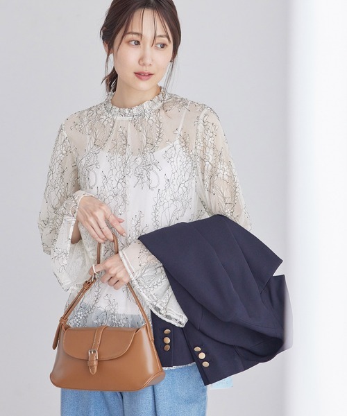 ナノ ユニバース(NANO universe) レースお花刺繍2WAYパール釦ブラウス