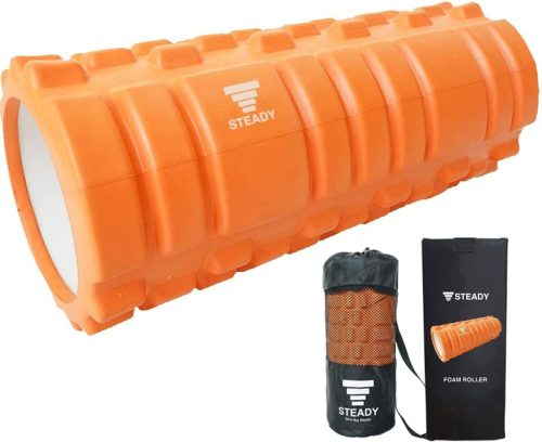中実設計により、高い耐久性を備えたフォームローラー。表面の丸みを帯びた凹凸が、指圧のような程よい刺激を与えます。クッション性のあるEVA素材を採用しており、ミディアムな硬さに仕上げられているのも特徴です。