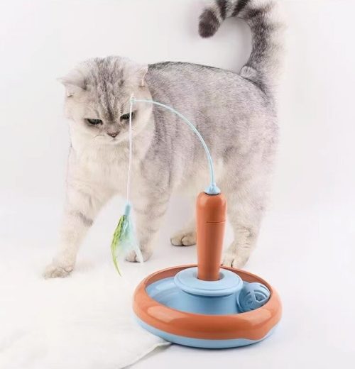 羽根の位置を変えると動きが変化し、カシャカシャ音と不規則な動きを楽しめるのが魅力。ワイヤー素材で絡まりにくく、飼い主が振りやすいよう設計されています。トリッキーな羽音と動きで猫の興味を引き続ける、おすすめのアイテムです。