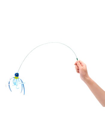 生きているような動きで愛猫を誘う釣り竿タイプのおもちゃ。フサフサとしたウサギ毛のマスコットと鈴の音が、猫の好奇心を強く刺激します。竿を振るだけで、まるで獲物のような動きをするのが特徴です。