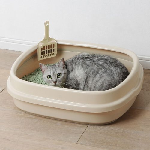 トイレ本体はハーフタイプで開放感があり、体格が大きい猫にもぴったり。消臭シートも付属しているため、一度に必要なモノがそろう製品を探している方におすすめです。