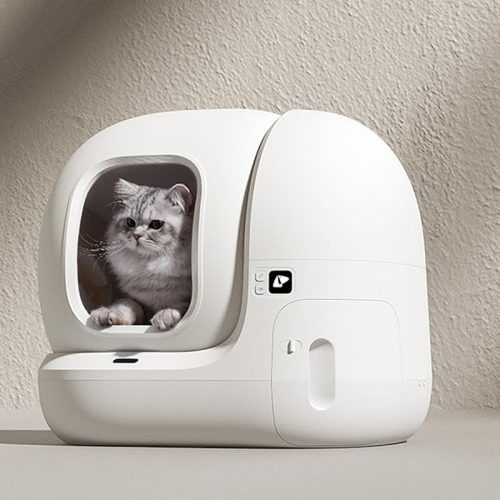 排泄物を自動回収するセルフクリーニング機能搭載の猫用トイレ。Wi-Fi接続により専用アプリで複数の猫の健康データを個別管理できるのが特徴です。消臭スプレー散布機能も備わっており、手間なく清潔な状態を維持できます。