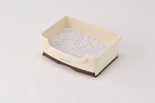 オリジナルの木製ペレットが付属する猫用トイレ。木製ペレットの原料は天然素材のみで、安心して使えます。